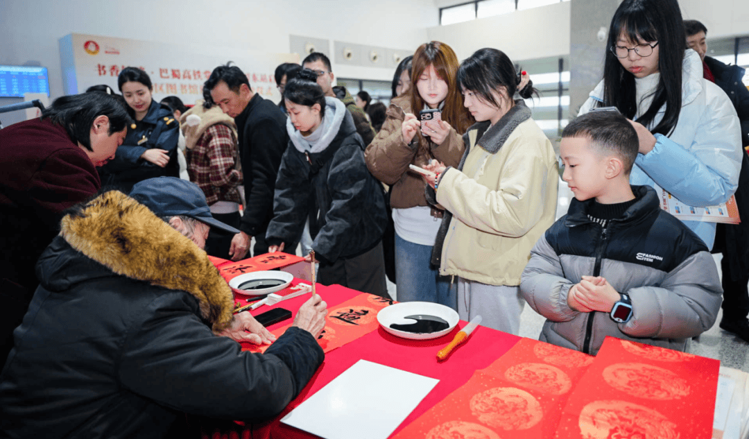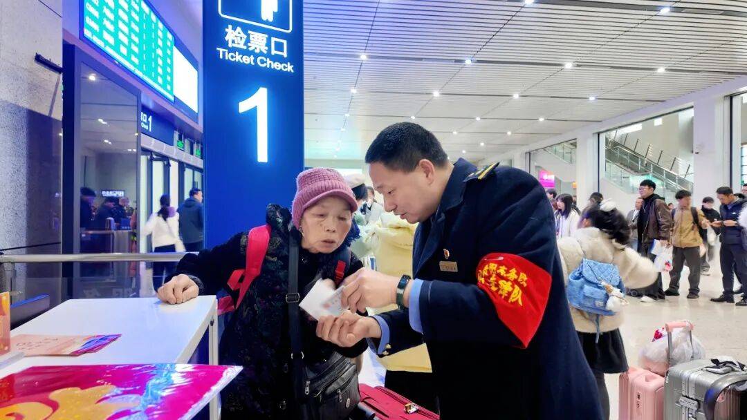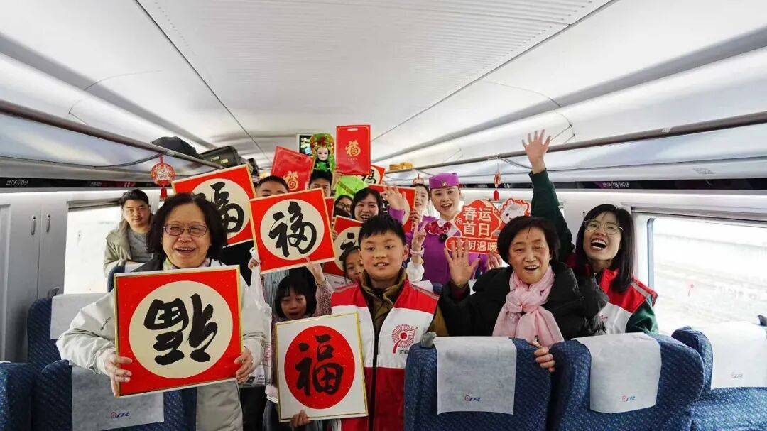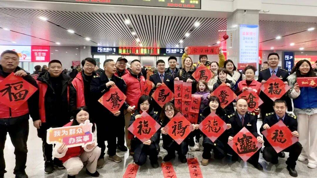2月1日19时,通过给搭客送“福”字、送对联等形式,春运首日,春运首日,