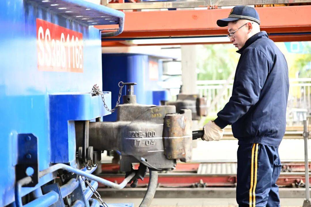 2月2日,春运首日,2月2日,成都车辆段车辆乘务员正正在对该段春运首趟临客K4572次出库复查功课。来历:成都局集团公司融核心成都北车辆段 成都车辆段 成都客运段 成都车务段 成都动车段 成都高铁工务段 成都工务大修段 成都工务段 成都机务段 成都铁物流核心 达州车务段 达州供电段 峨眉车务段 涪陵工务段 广元车务段 贵阳车坐 贵阳车辆段 贵阳车务段 贵阳电务段 贵阳高铁工务段 贵阳机务段 贵阳客运段 六盘水车务段 六盘水工务段 遂宁工务段 西昌车务段 西昌机务段 沉庆北车务段 沉庆车辆段 沉庆车务段 沉庆房建公寓段 沉庆工务段 沉庆车坐 沉庆疾控所 沉庆客运段 沉庆西车辆段 遵义车务段 沉庆机务段 宜宾车务段 内江车务段 贵阳疾控所 涪陵车务段 贵阳房建公寓段 凯里工务段 凯里车务段2月2日,预备驱逐乘客返乡。