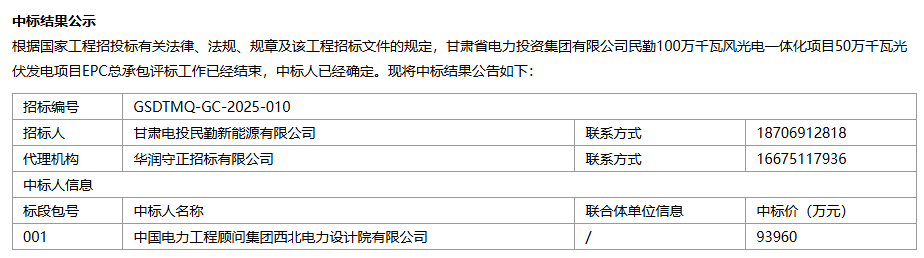 项目2名称:哈油田吐鲁番鄯善东100万千瓦光伏发电项目二~五标段光伏EPC总承包中标人:中建三局集团无限公司&陕西省水利电力勘测设想研究院(集团)无限公司结合体